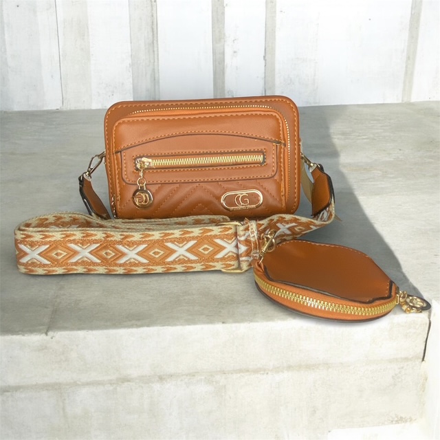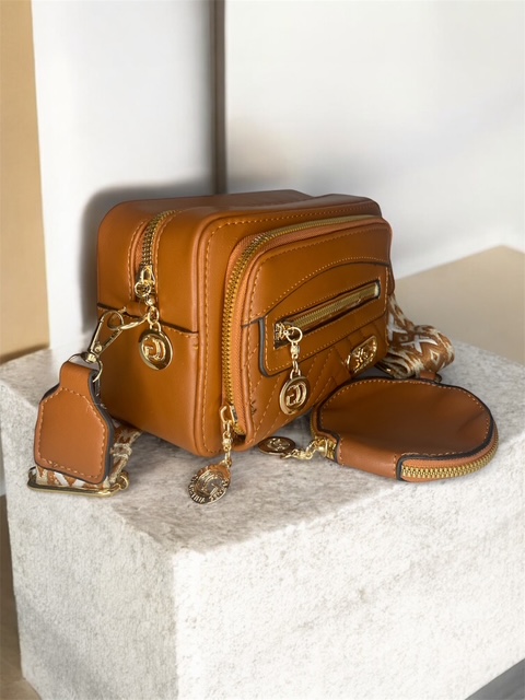 Women’s Handbag with Change Purse and Broad Strap – Tan Brown